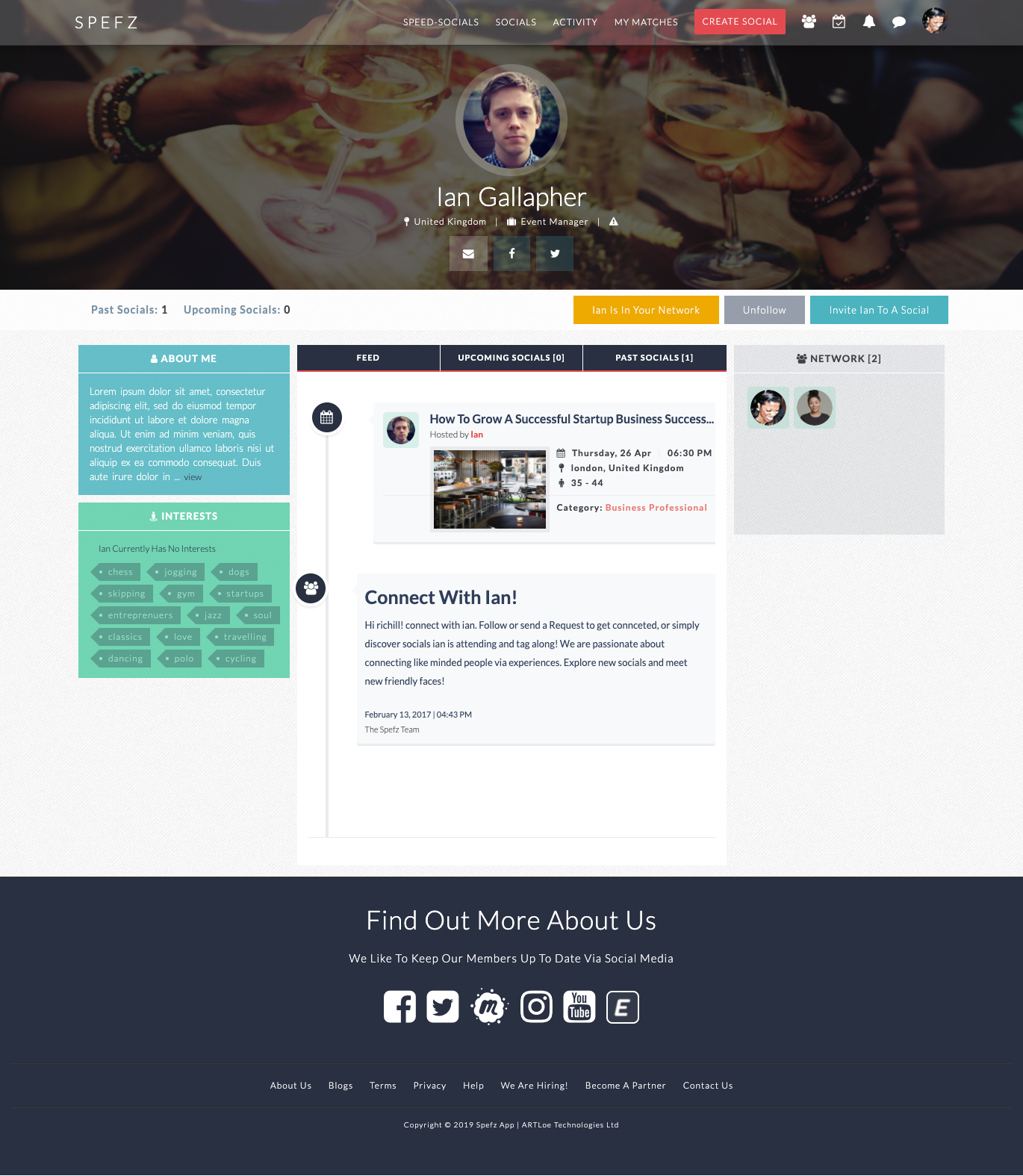 We believe that by creating a visually oriented and appealing interface, we are able to put together q website that helps users engage with nearby people in person through the discovery of real-life socials and events. A website that allows Emeka to meet people of his preference in person and that provides him with more stat info on potential matches.